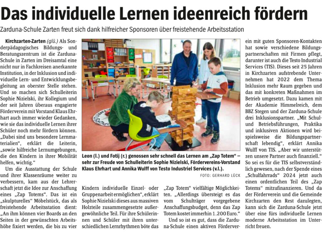 8. Februar 2025AllgemeinSophie Nizielski Dank der Spende von TESTO Industrial Services und der finanziellen Unterstützung der Gemeinde Kirchzarten und des Fördervereins der Schule, können die Schüler:innen der Grundstufe beim Lernen profitieren!