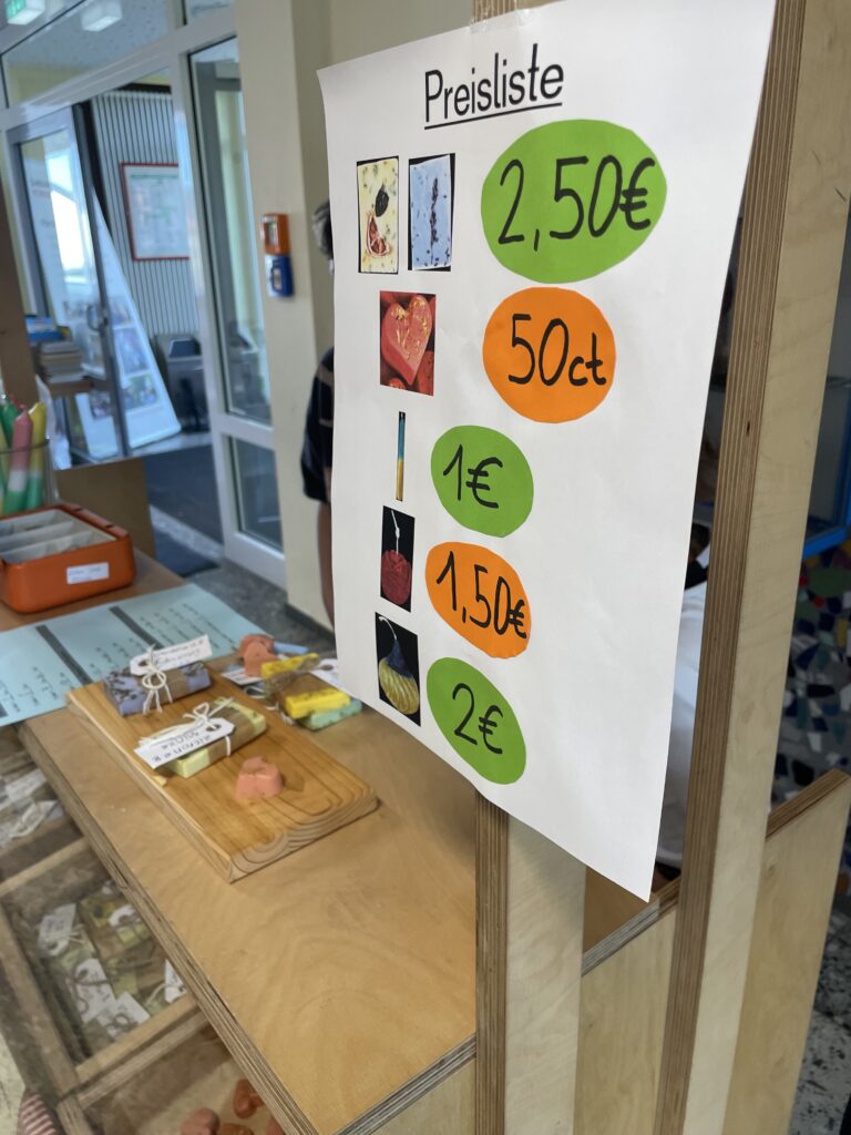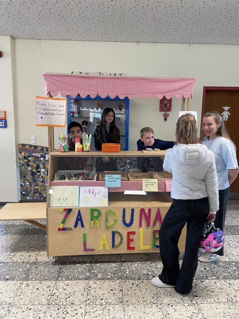 Über 44 Stände wurden für den Verkauf reserviert. Tolle Kuchen konnten die Eltern von Kindergarten und Schule verkaufen. Zwei Klassen haben mit viel Mühe besondere Produkte zum Verkauf hergestellt und diese am Zarduna-Lädele oder dem Rollwagen angeboten. Damit füllten die Schüler:innen ihre Klassenkassen für besondere gemeinsame Aktionen. Ein Flohmarktstand verkaufte Kindersachen und Spielzeug für den Förderverein der Schule.