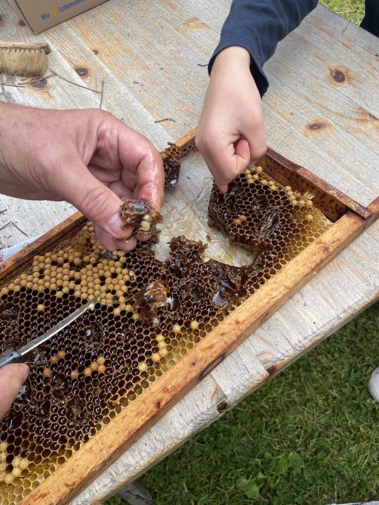 Wir aßen eine Wabe mit Honig, hatten eine Drohne auf der Hand, usw!!