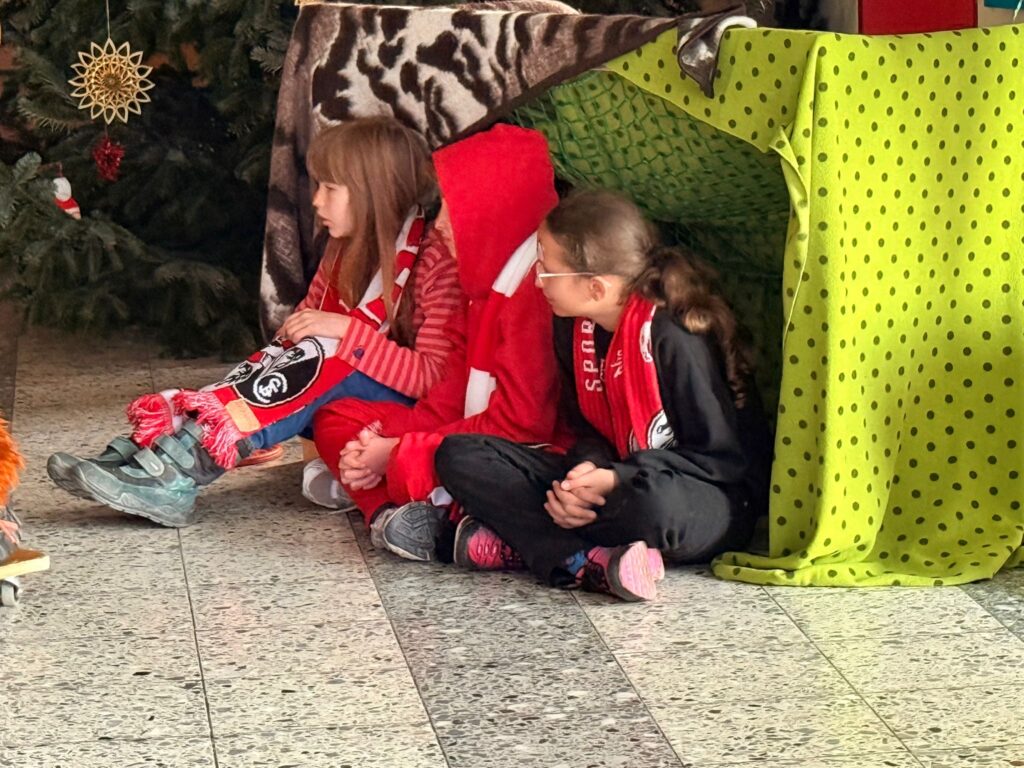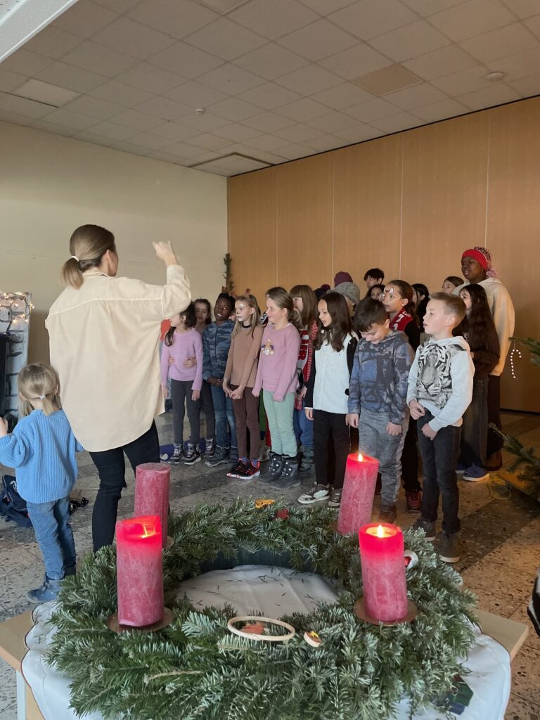 Heute war ein besonderer Tag für die Kinder der GS2 und ihre Lehrerin. Heute führten sie den FINDEFUCHS morgens bei der Adventsfeier mit den Gemeindemitarbeiter:innen und unserem Bürgermeister auf. Außerdem lud die Zarduna-Schule heute zum 18. Adventstürchen und öffnete die Türen für alle Besucher:innen. Dabei gab die Klasse wiederholt ihr Bestes und sang außerdem noch kräftig Weihnachtslieder.